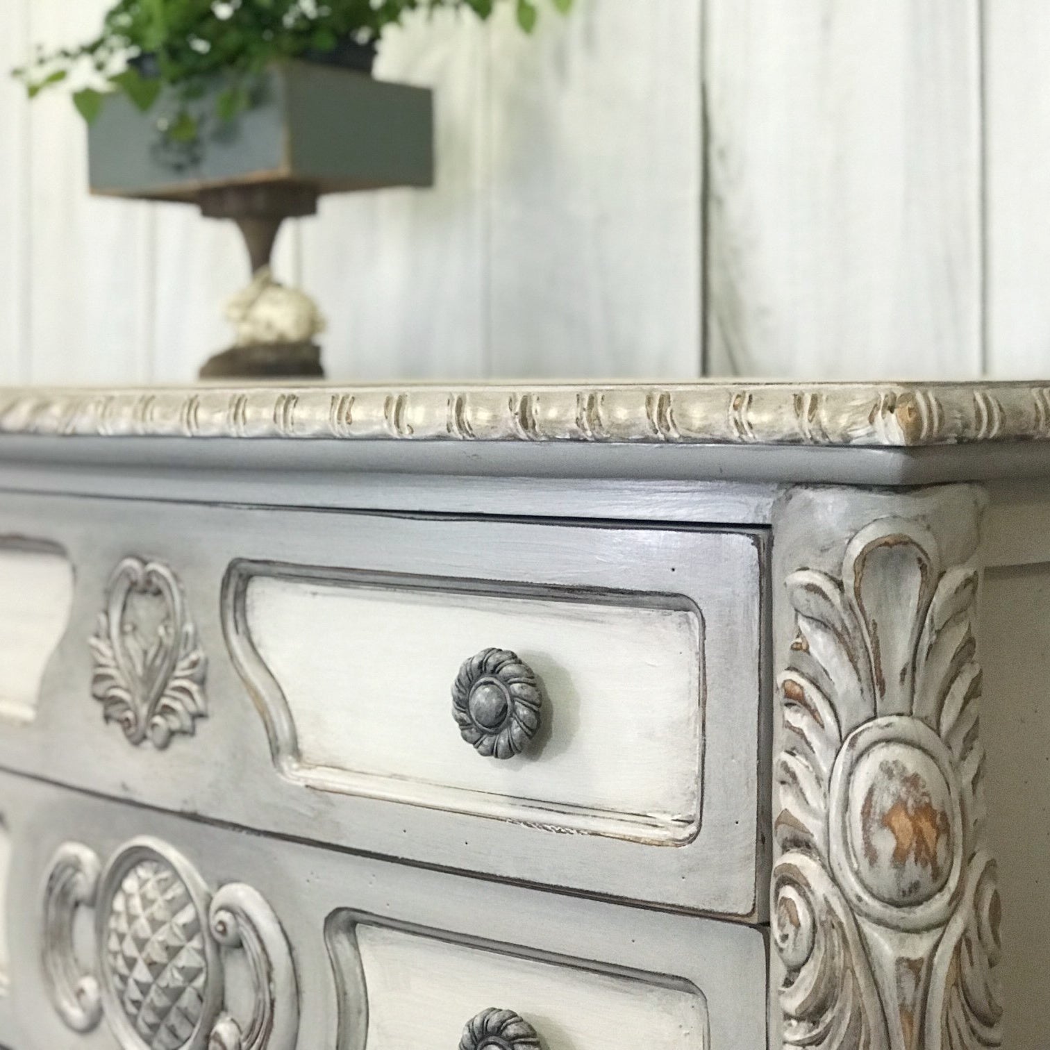 Get FancyIf your bedroom furniture is ornate and you want a more custom look, you can achieve that with Rethunk Junk by Laura®. This look was created by cleaning with our Prep and then painting with Gray Mist and Oyster. Once dry, we simply distressed the carved details then applied our Antique Brown Glaze to pop the contours. As a final step, you can seal the top with Tuff Top for added protection or maybe add a Wash for protection + added dimension. So simple but totally fabulous.