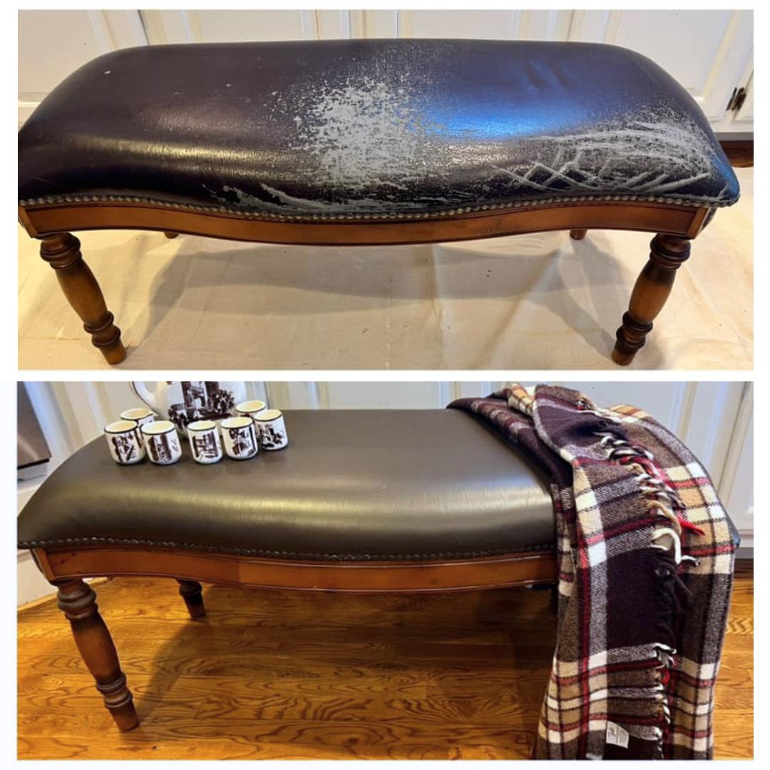 Leather, vinyl and pleather can all be painted with Rethunk Junk by Laura! If your leather is porous and absorbs liquid, simply follow the steps outlined above for how to paint fabric. If your leather/pleather/vinyl repels liquid, you can simply clean with the Prep and then paint just like you would any hard surface - no need to sand between coats of paint. Enjoy your beautifully refreshed upholstered piece!