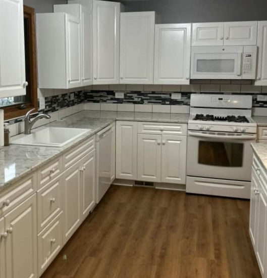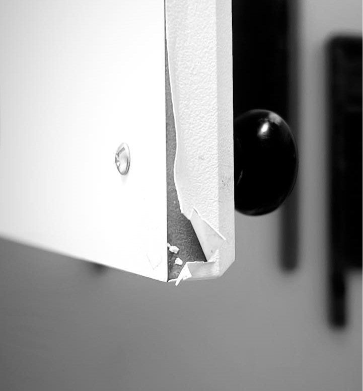 Yes! No need to panic! The peeling layer that feels like plastic is called Thermofoil and this common problem is actually pretty fun and extremely satisfying to fix! Whether in your kitchen or bathroom, save money with this tutorial and Rethunk Junk by Laura®.