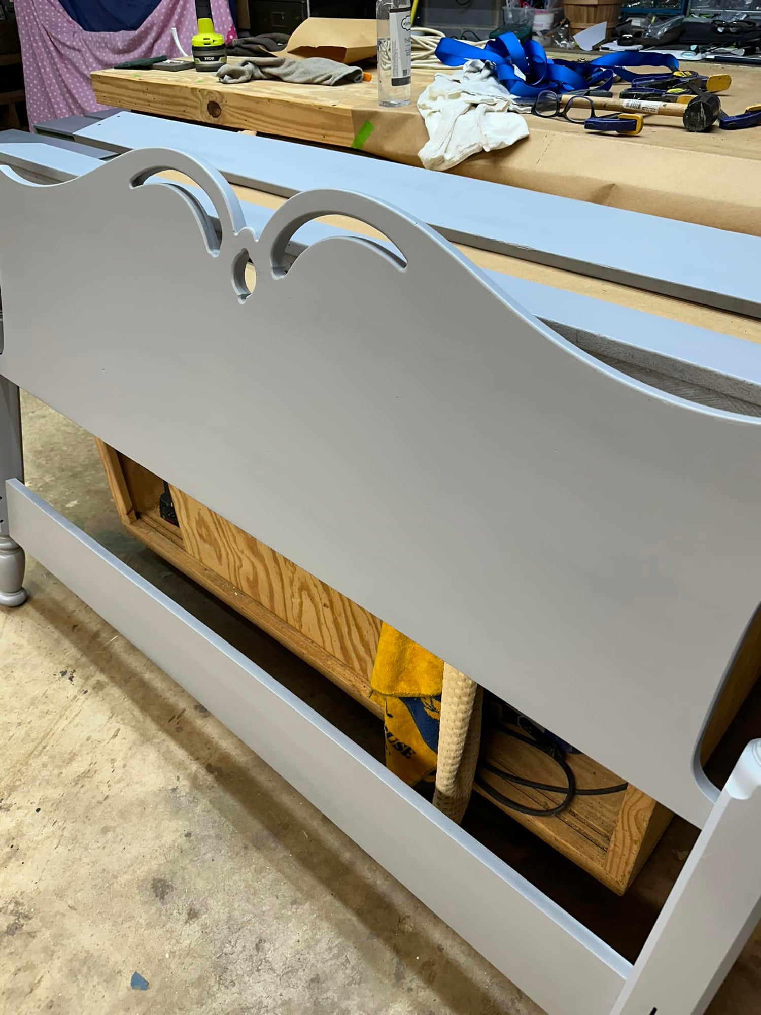 Photo features one coat of gray sprayed over cherry wood. Credit: RTJ Retailer, Kelli, of Rustic & Random in Forest City, NC.