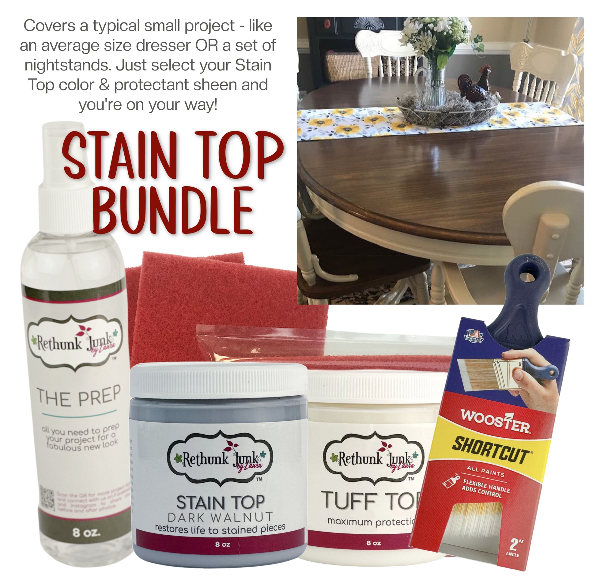 This kit includes everything you need to Stain Top one project like an average size dresser, two nightstands, or average to medium table.